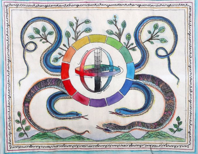 ‘Constant Change’ (Embroidery and painting on canvas, 50x 60cm, 2020)